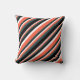 This throw pillow design features a white, red, dark slate gray, and black colored striped pattern.