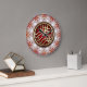 Custom Art Wall Clock : Red ,white and gold geometric pattern that kinda have a festive feel to it. This beautiful wall clock is centered with the phrase 'Bismillah" in Arabic calligraphy in the center, for daily Muslim blessings at home or office .