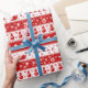 White & Red Santa Face and Snowman Pattern Wrapping Paper