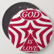 Colossal Round Button: White & Red Star "God Is Love" - High-Contrast Statement Pin | Achempong.