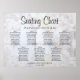 Make your wedding reception beautiful with this seating chart. Designed as a part of our White Reflections Wedding Suite, it features black text over a background of reflecting white flowers and hearts. This chart shows table assignments so your guests will have an easy time finding the right table.