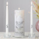 Make your wedding ceremony all the more special with this beautiful unity candle set. Designed to coordinate with our White Reflections Wedding Suite, it features a black text over a background of reflecting white flowers and hearts. The quote is from the 19th century English Romantic poet John Keats, and reads: Two souls with but a single thought, Two hearts that beat as one. Text includes the couple's names and wedding date, with the first initial of each member of the couple on one of the taper candles.