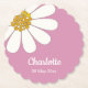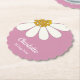 White Retro Modern Daisy Flower Custom Name Paper Coaster