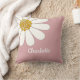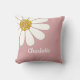 White Retro Modern Daisy Flower Custom Name Throw Pillow
