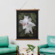 Decorate your living space with this vertical, hanging wall tapestry with wooden tops that features the photographic image of a beautiful species of tropical Rhododendron blooms framed with a black border. A lovely, floral design!
