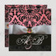 WHITE RIBBON PINK BLACK DAMASK MONOGRAM INVITATION