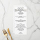 Accentuate your decor by adding a menu card. As your guests look forward to the bride and groom's entrance or the presenting of the guest of honor, they can find a menu card at their setting, adds a nice touch. Personalize and create your menu by adding, and changing the text in the fields provided front and back. You can change font style, size, and color, as well as paper type and style.