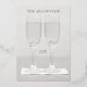 This elegant design features two sparkling wedding rings, each displayed in its own champagne flute, symbolizing two individuals who continue to celebrate life together. Silver foil accents add a luxurious, festive touch, perfect for honoring a quarter-century of love.