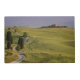 Souvenir placemat with the white gravel road (or strada bianca) to Terrapille agriturismo with cypress trees alongside it in the evening light in the Valdorcia (Orcia Valley) near Pienza in Tuscany, Italy. The road is also called Gladiator Road because the movie The Gladiator was partly recorded here.