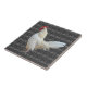 WHITE ROCK ROOSTER ON GREY LACE BACKGROUND----ADD SOME TEXT.---SMALL TILE MAKES A GREAT DRINK COASTER.