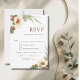 White Rose and Wild Strawberry Vertical Wedding RSVP Card with Meal Choices... Enclose this floral watercolor RSVP reply card inside your wedding invitation packet to make sure your guests can let you know if they're able to attend, how many are attending, and what their meal preferences are. Envelopes are included with the cards. All example text is displayed in elegant serif typography and can be easily revised with your own details on the personalization template. This vertical wedding RSVP card is part of a wedding suite with coordinating accessories in the same romantic white roses and wild strawberries theme.