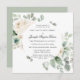 A beautiful first death anniversary invitation features elegant white rose and sage green leaves. Formal text is used to create a reverent tone in keeping with the first death anniversary.