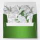 A very elegant and colorful green wedding envelope with a gorgeous bridal bouquet of stunning white roses printed on the inside.