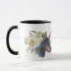 Behind this beautiful watercolor portrait of a majestic Doberman Pinscher dog on this mug is a pretty white rose bouquet. The bouquet and dog image have an overlay swirl of faux glitter confetti. The image is printed on two sides, with your custom text in black at the center bottom between the images. Perfect for anyone who has lost their heart to a Dobie! *Please note - the image is printed and does not contain actual glitter.