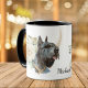 Behind this beautiful watercolor portrait of a majestic Giant Schnauzer dog on this mug is a pretty white rose bouquet. The bouquet and dog image are have an overlay swirl of faux glitter confetti. The image is printed on two sides, with your custom text in black at the center bottom between the images. Perfect for anyone who has lost their heart to a Schnauzer! *Please note - the image is printed and does not contain actual glitter.