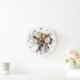 White Rose Bouquet Miniature Beagle Dog Round Clock