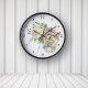 Behind the beautiful watercolor portrait of a Yorkshire Terrier on this clock is a pretty white rose bouquet. The bouquet and dog image are have an overlay swirl of faux glitter confetti. Dark gold numbers and diamond shaped markers around the perimeter make the clock easy to read. Perfect for anyone who has lost their heart to a Yorkie.