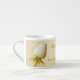 Unique white rose bud matching wedding set espresso mug. Designed by Sarah Trett.