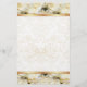 Subtle and elegant in gold edged damask, with a lovely profusion of white roses at top and bottom of stationery..