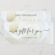 Simple and elegant script white rose gift certificate. This elegant script gift certificate fits perfectly within a standard #10 business envelope. Perfect for your brand and business.