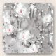 White rose floral gray pink abstract beverage coaster