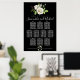 Elegant, keepsake 10-Table seating chart. Beautiful and easy DIY wedding sign features a white rose posy at the top. At the bottom is a white rose wreath with your wedding date. The wedding couple names are written in a carefree script font. The white text and roses are stunning against the black background. Frame it (frames are available on Zazzle) to use at your reception - then take it home as a keepsake of those who attended your wedding. This seating chart is part of the Antique Roses collection that contains many DIY wedding templates to create a personalized wedding ceremony and reception. You should see a link to it on this page. If you don't or need help with an item, please contact me.