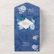 White Rose Flowers on Blue pattern paper All In One Invitation