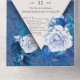 White Rose Flowers on Blue pattern paper All In One Invitation