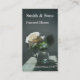 This standard size business card features a texture painted photograph of a beautiful white rose in a glass vase in morning light. In the language of flowers, the white rose symbolizes remembrance, faith, love, and hope. On the reverse, an opaque image. Plenty of template space front and back for all your details.