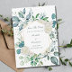 Lovely white roses with greenery and eucalyptus leaves on this wedding save the date card. Elegant and formal.