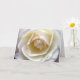 Macro photograph of an unfolding, white Rose. Photo by Arndt Fischer. The text on the card says “Sympathy” but that may be deleted or changed to whatever you wish.