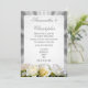 White rose on silver grey wedding invitation