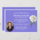 Elegant death announcement done in a periwinkle blue background and a black frame around the edge. A white rose decorates the right side, of the announcement and an oval cut out photo area is on the bottom left. Add your loved one's picture and personalize the white text fields to suit your needs.