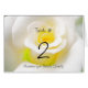 Lovely wedding or party reception table number tent card, with a photograph of a pretty white and yellow colored rose, as the background. Black text is customizable to read what you wish. Customize the number and text for each table you need a card for.