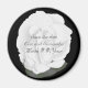 Pretty painting of a white rose in full bloom, with Save the date, bride's and groom's names, and wedding date, printed on magnets. Customize with your wedding details on an easy to use template. Shop matching Wedding Invitations; Postage Stamps; Save the date Postcards, magnets, and stickers; Wedding Seals; Bridal Tote Bags; Menu Cards, Wedding Ties, Wedding Sneakers; Mother of the Bride and Groom pins; Thank you Photo Cards; and Thank you Stamps: