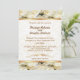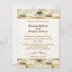 Subtle and elegant in gold edged damask, with a lovely profusion of white roses the border. Customize front and back with your Bridal Shower information.