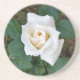 white rosebud drink coaster