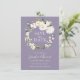 Send out lovely wedding save the date cards with a delicate white watercolor floral wreath of roses, hydrangeas, mixed blooms and trailing greenery over a popular lavender purple background. A modern hand-written script type face spells out the names of the bride and groom beautifully. The back of the card has a photo template for uploading your desired photo.