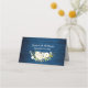 White Roses Blue Wood Lantern Wedding Table Place Card