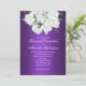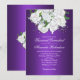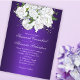 Mark your calendars in style with this enchanting purple wedding invitation! A cascade of pristine white roses, symbolizing purity and new beginnings, adorns the top of this elegant design. The rich purple hues create an atmosphere of regal romance. The invitation features ample space for you to personalize all the essential details of your special day in a classic, romantic script font. This exquisite invitation promises to capture the hearts of your guests and set the stage for a truly unforgettable wedding celebration.