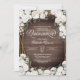 White Roses Elegant Rustic Wood Floral Quinceañera Invitation