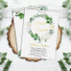 Beautiful watercolor white roses Bridal Shower wreath design with lovely eucalyptus and fern greenery in shades from dusky sage to vibrant green real gold foil editable script text. The theme is continued on back with a top and bottom floral and greenery swags.
