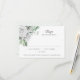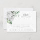Watercolor white roses, eucalyptus, baby's breath, and greenery RSVP. The back of the card is a lattice work pattern in pale eucalyptus green. If you would like this design on a matching product, please contact me through my store. Matching wedding invitation available.
