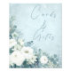White Roses Hellebores Silver Eucalyptus floral wedding cards gift sign featuring elegant calligraphy script modern watercolor flowers frosty pale blue background and snowflake details