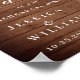 The product was so pretty! I was surprised when it arrived that it was just poster thickness but I purchased a foam board and used two sided tape to attach it so it could stand up. Perhaps I didn’t read carefully regarding the thickness of the paper. With this poster and the same design napkins, place cards and table cards, the rehearsal decorations were perfect! I added single burgundy hydrangeas to clear vases with fairy lights inside as centerpieces and it looked wonderful! Colors were beautiful! Printing was excellent!