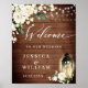 White Roses Lantern Rustic Wood Welcome Wedding Poster