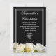 White roses on black floral wedding invitation