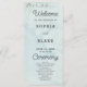 The wedding details, including the names of the couple, wedding date, and venue, are presented in classic black and gray using a simple block font. This choice ensures clarity and readability, allowing your guests to follow the ceremony proceedings seamlessly. To add a touch of whimsy and sophistication, the words "Welcome," "Ceremony," and "Wedding Party" are elegantly rendered in a pretty decorative script font. This script font enhances the program's overall appeal, infusing it with a sense of romance and grace.