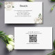 A beautiful white roses with gold trim minimalist details enclosure card with QR code on the back. All fields are editable.