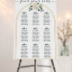The seating arrangements are presented in simple unique modern typography, ensuring each table and guest name is easy to read while maintaining a clean and sophisticated layout. Displayed at the entrance to your reception, this chart guides guests smoothly to their tables while also serving as a striking decorative element.